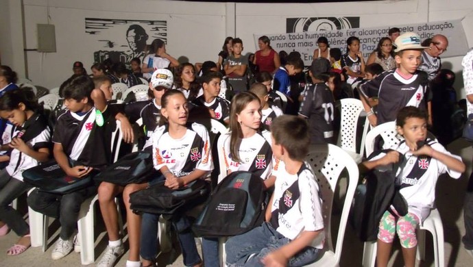 Um a um, as crianças recebem os kits do Vasco em premiação ao bom desempenho escolar (Foto: Divulgação)