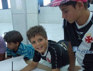 No projeto, as crianças aprendem desde cedo que o verdadeiro torcedor do Vasco da Gama é de paz (Foto: Divulgação)O prêmio para eles foi mais diversificado. Cada criança recebeu uma mochila do Vasco com itens como caderno, lápis e borracha personalizados do time. Além de uma camisa do Vasco da Gama, garrafa de água do clube cruz-maltino e o livro “Meu Pequeno Vascaíno”, de Fernanda Abreu. Os kits e as camisas foram recebidos através de doações de torcedores interessados em ajudar o projeto, enquanto que as garrafinhas e os livros foram doados pelo Vasco da Gama. A loja oficial do clube e a fornecedora de material esportivo personalizam as camisas com os nomes dos estudantes aprovados.